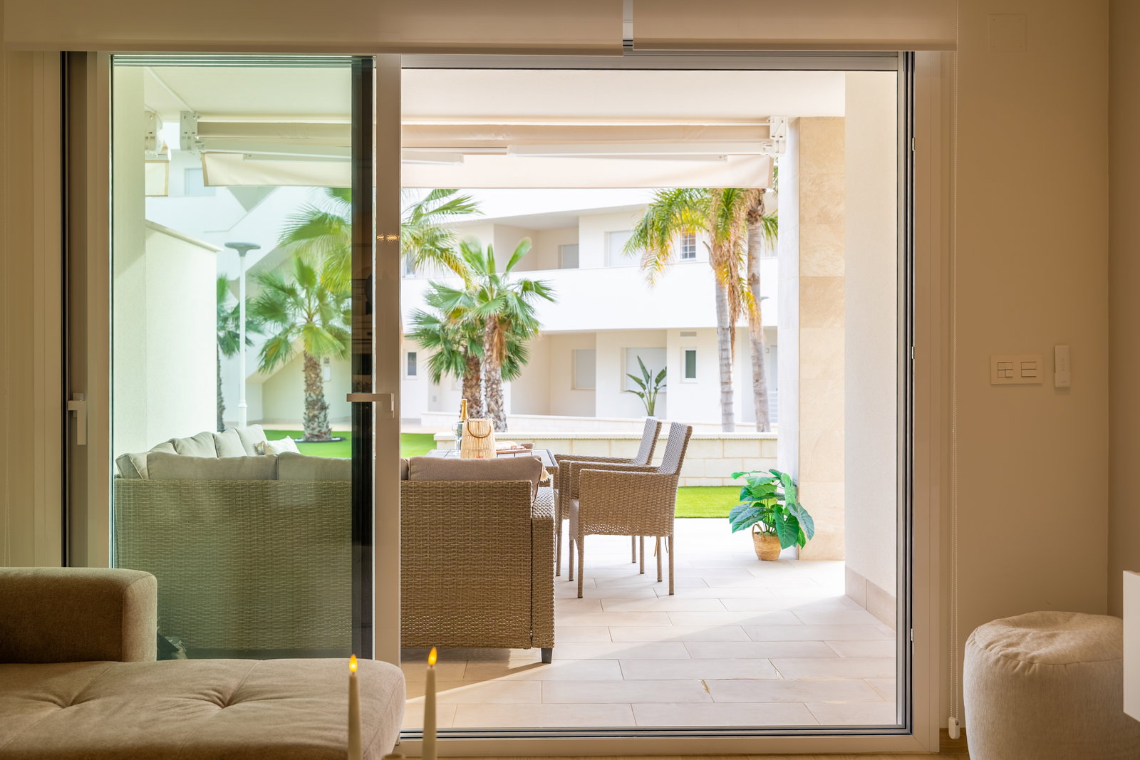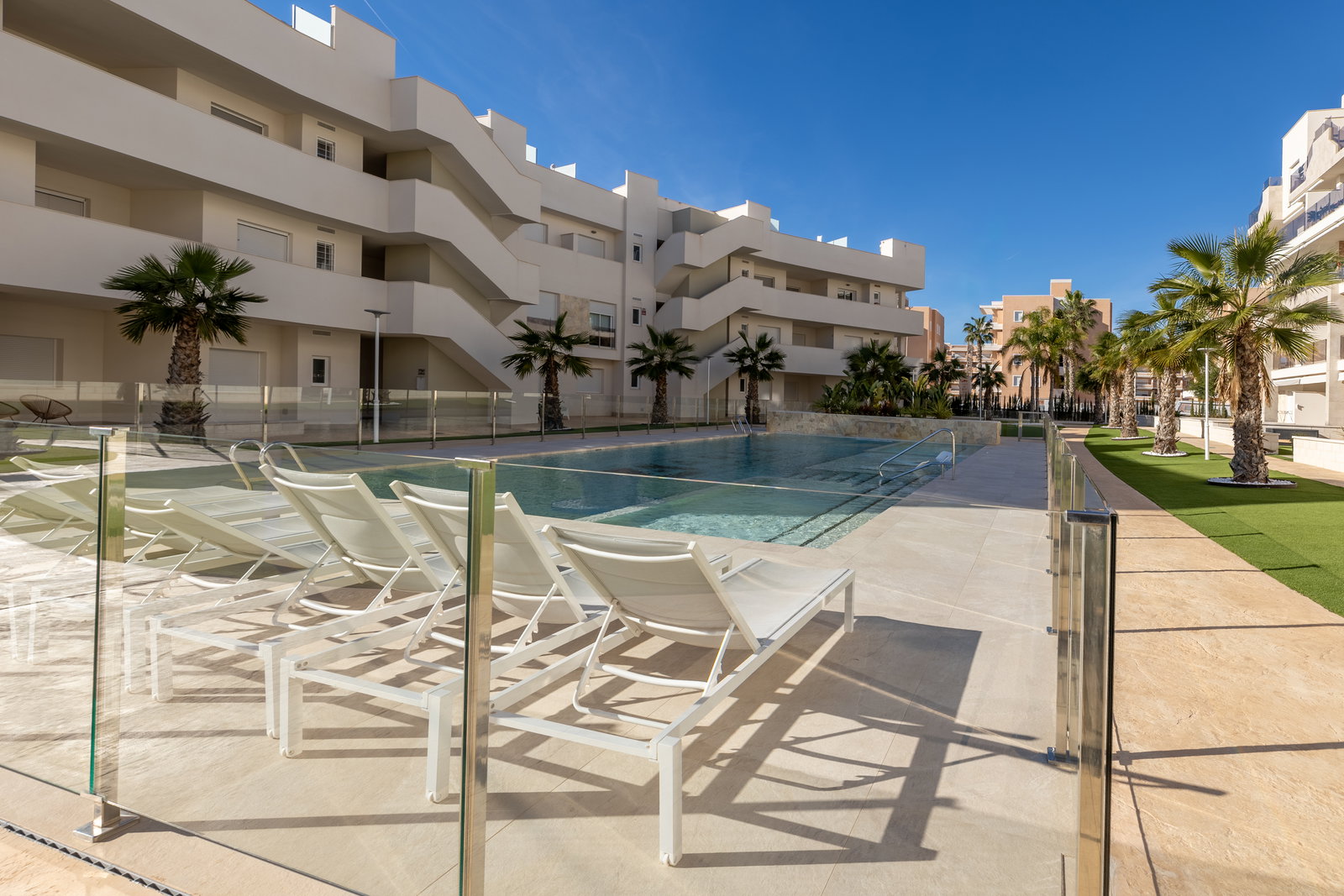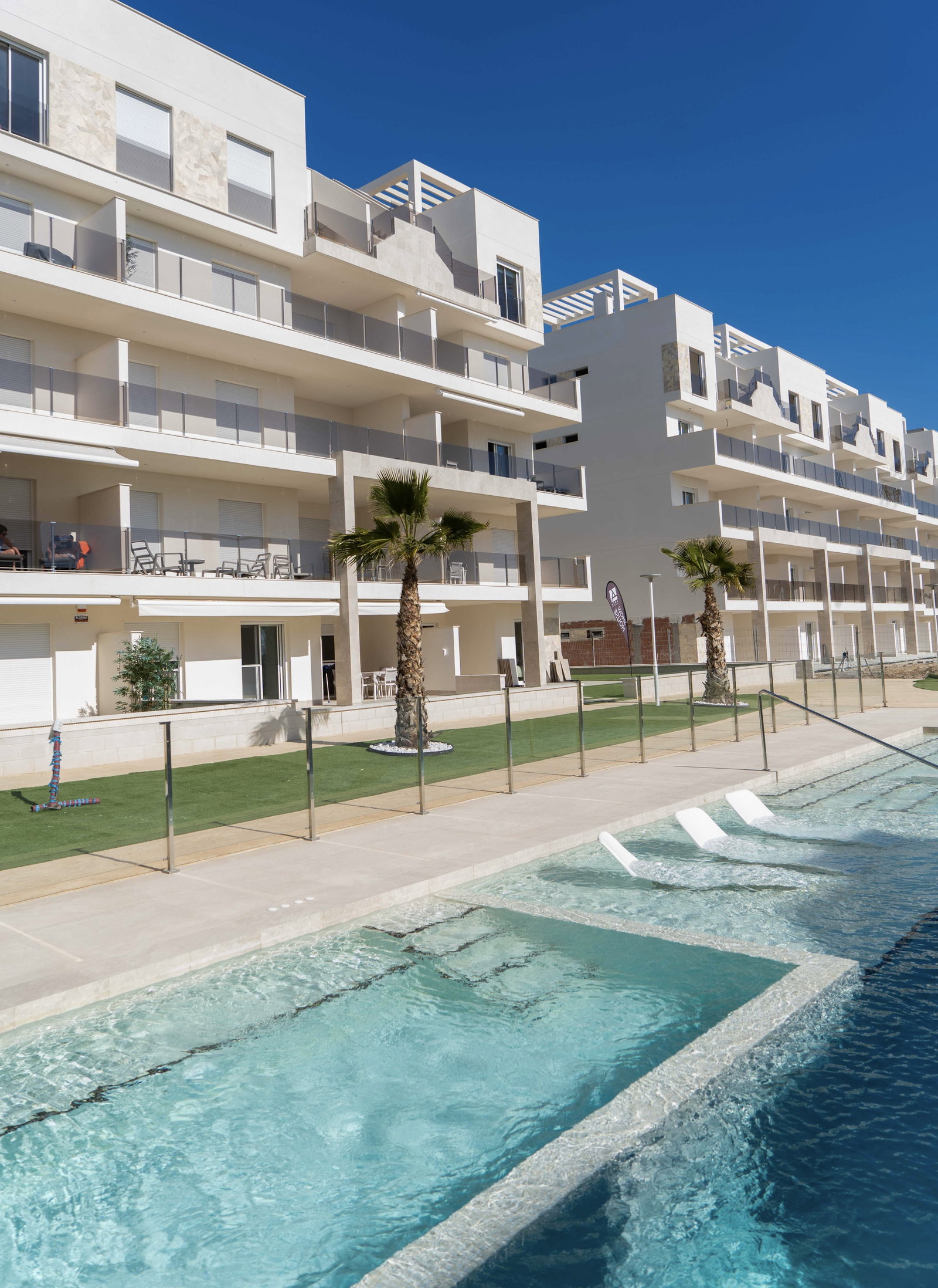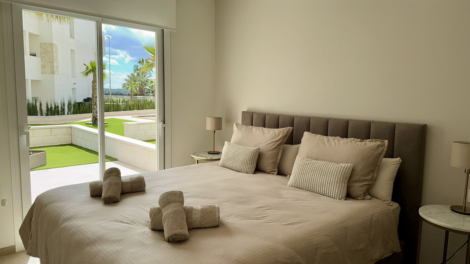 Check-in: 15:00 | Check-out: 10:00Het luxe appartement ligt in El Raso Guardamar del Segura. In een mooie groene omgeving met uitzicht op de zoutmeren. Het nieuwbouw appartement bevindt zich op de begane grond van een afgesloten complex Area Beach 3. Beschikt over 2 slaapkamer en 2 badkamers. Eerste slaapkamer heeft een groot 2 persoons bed (180x200) een smart-tv, ingebouwde kledingkast en badkamer en-suite. Tweede slaapkamer heeft 2 losse bedden (90x200) en een ingebouwde kledingkast, de badkamer is apart van de slaapkamer. Baby bed + kinderstoel op aanvraag beschikbaar. Een openkeuken volledig ingericht, koel/vries combinatie, kookgedeelte, oven, magnetron, wasmachine (apart in washok) koffiezetapparaat van Dolce Gusto en vaatwasser. …