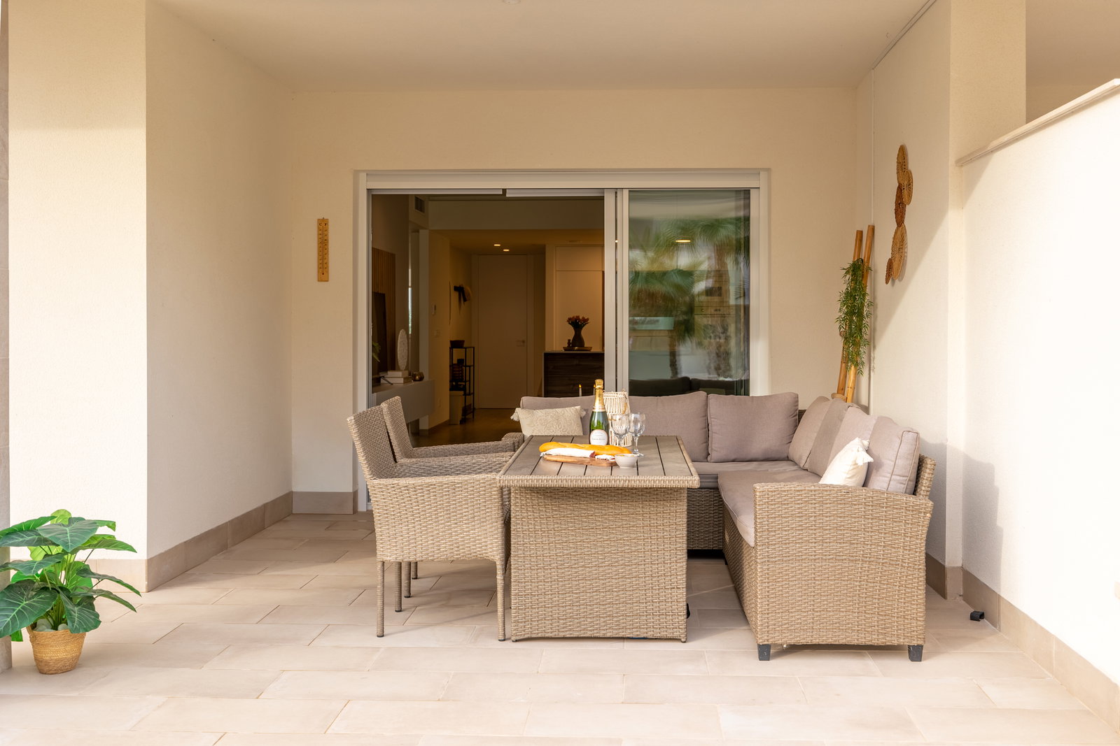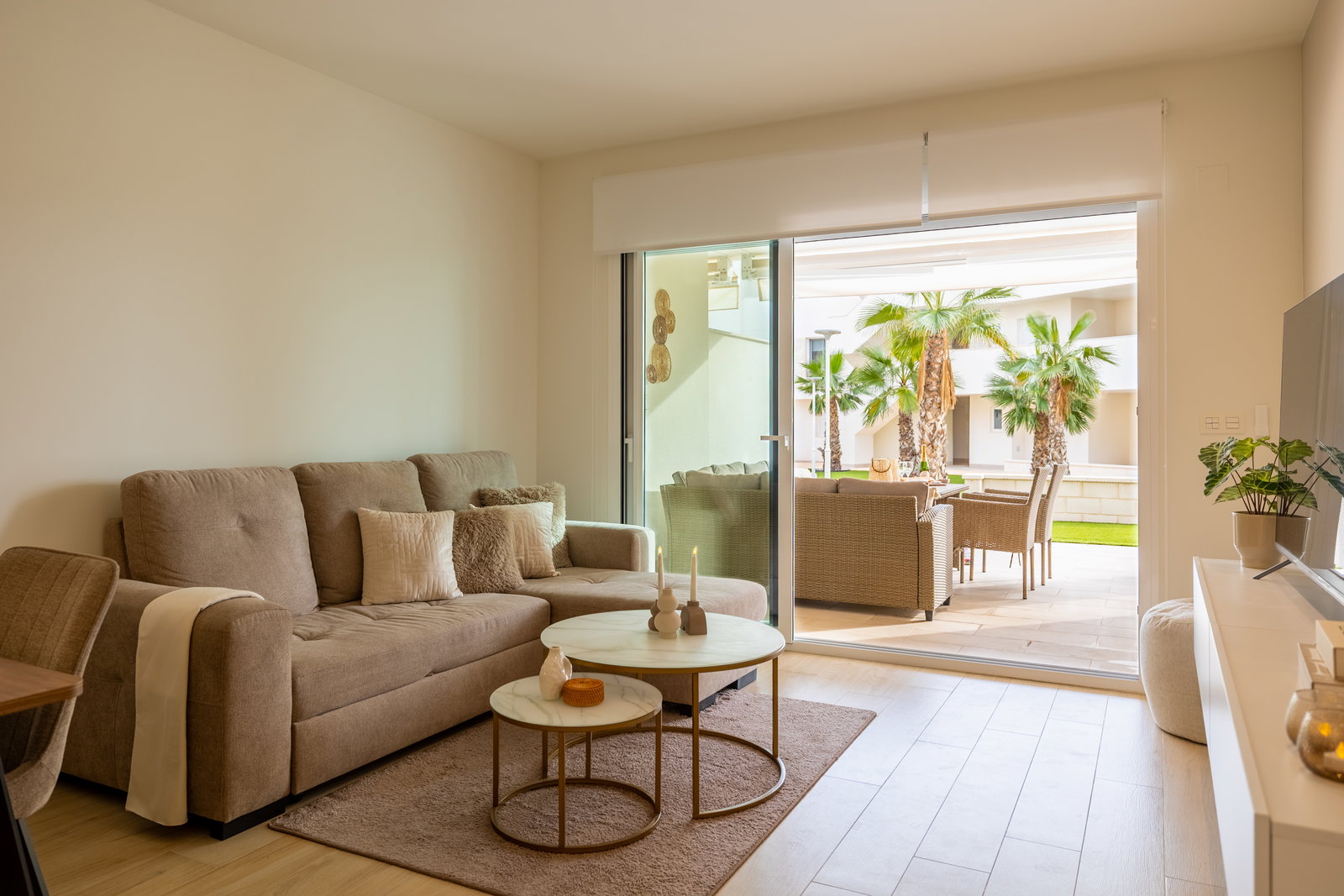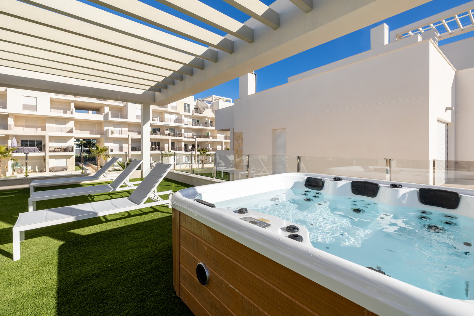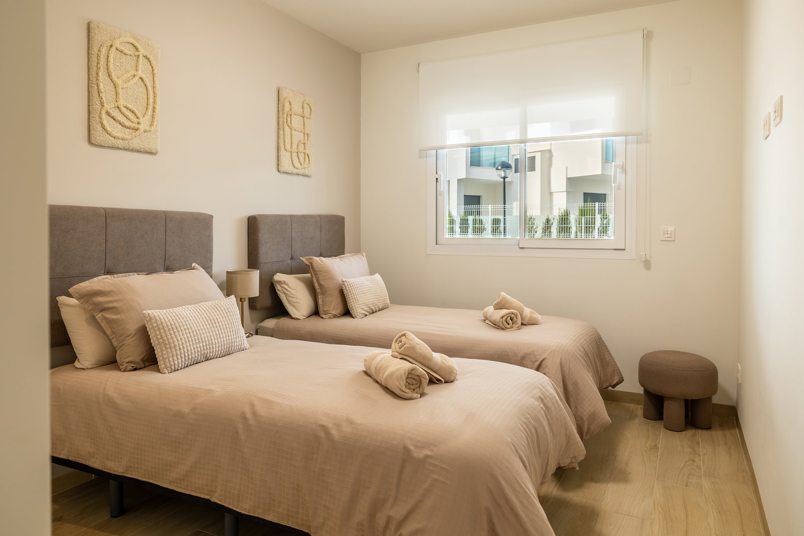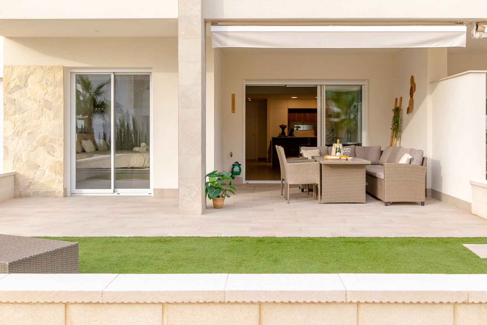 Check-in: 15:00 | Check-out: 10:00Het luxe appartement ligt in El Raso Guardamar del Segura. In een mooie groene omgeving met uitzicht op de zoutmeren. Het nieuwbouw appartement bevindt zich op de begane grond van een afgesloten complex Area Beach 3. Beschikt over 2 slaapkamer en 2 badkamers. Eerste slaapkamer heeft een groot 2 persoons bed (180x200) een smart-tv, ingebouwde kledingkast en badkamer en-suite. Tweede slaapkamer heeft 2 losse bedden (90x200) en een ingebouwde kledingkast, de badkamer is apart van de slaapkamer. Baby bed + kinderstoel op aanvraag beschikbaar. Een openkeuken volledig ingericht, koel/vries combinatie, kookgedeelte, oven, magnetron, wasmachine (apart in washok) koffiezetapparaat van Dolce Gusto en vaatwasser. …